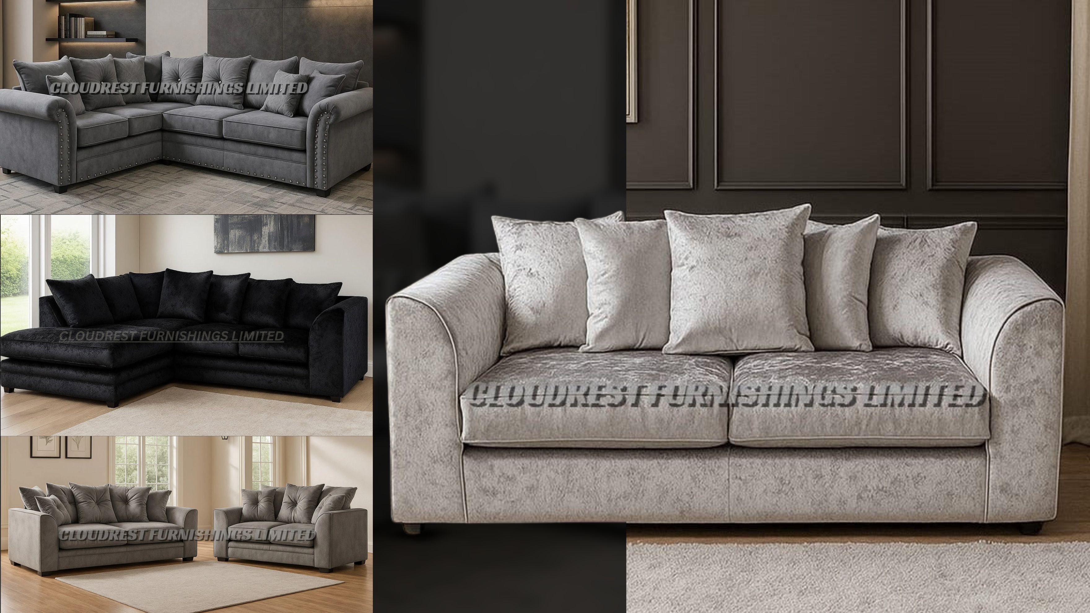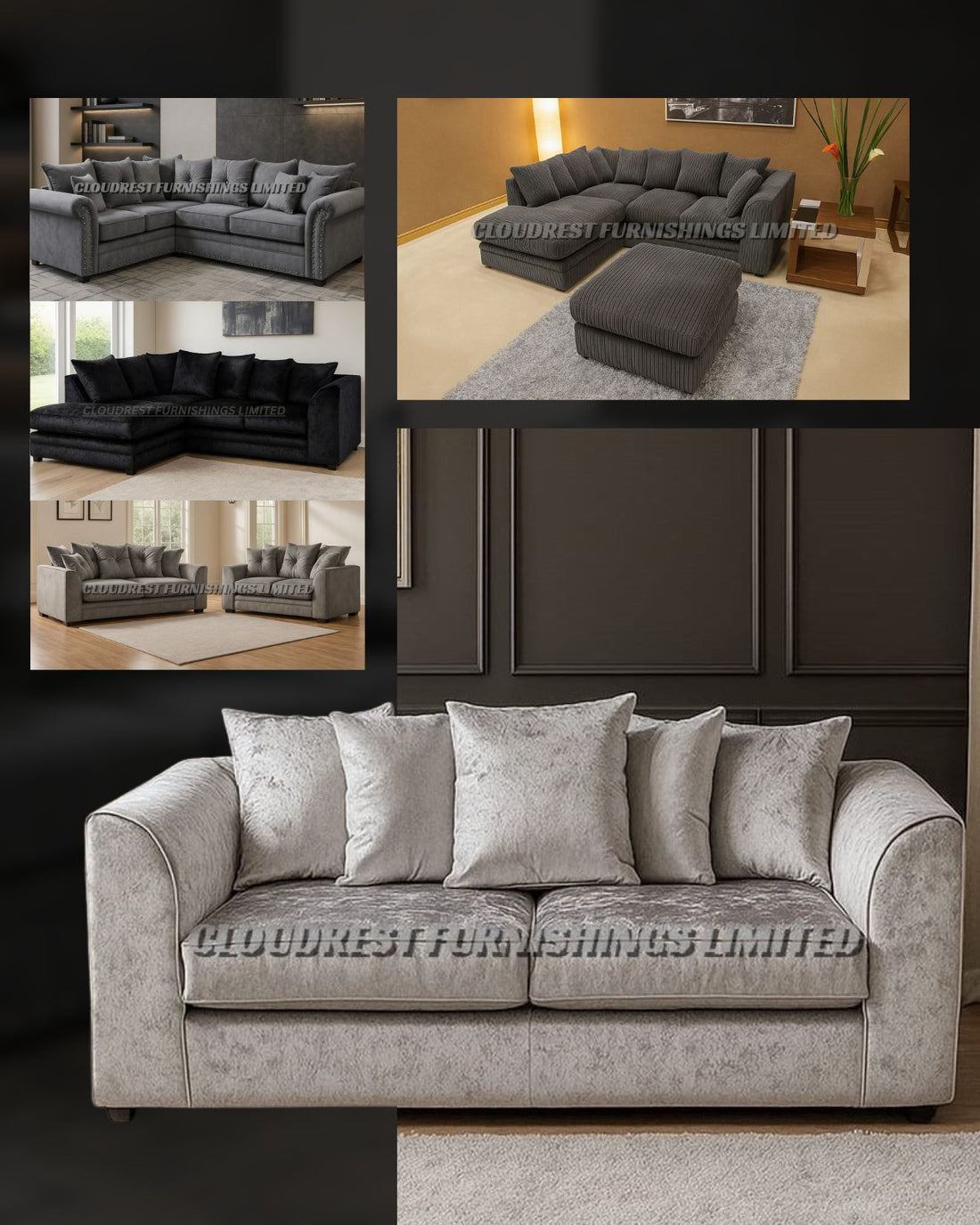 Shannon Crushed Velvet Sofa Brand New Black and Silver 3+2 & Corner | Stylish Living Room Furniture