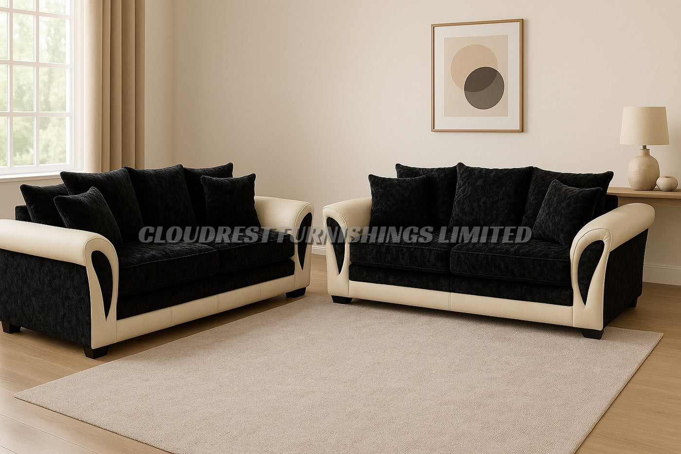 Elevate your home decor with the Shannon Black and White UK Sofa. Experience luxury and comfort with this stylish and versatile sofa set, designed to complement a range of interiors.
