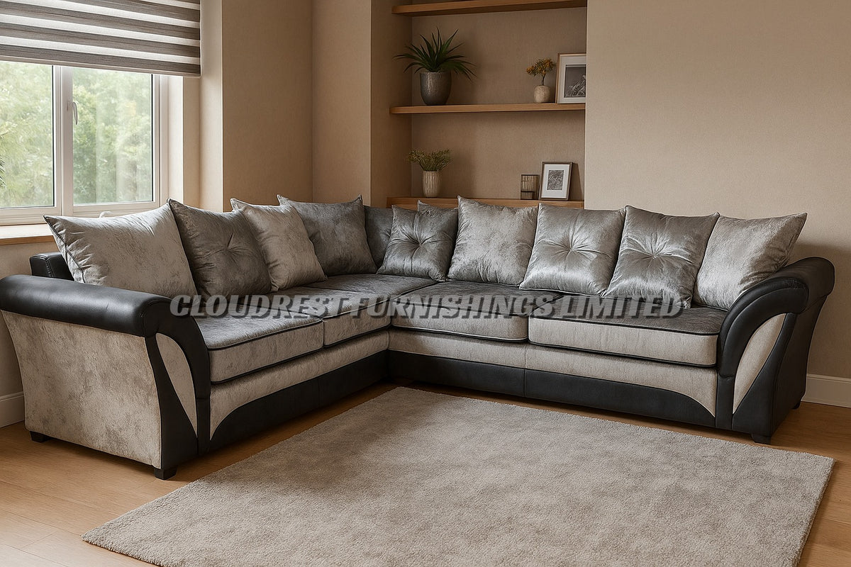 Enhance your living space with our sleek Shannon Sofa, available in classic Black and Silver. Crafted from high-quality Kensington fabric, this sofa combines modern design with ultimate comfort. The U-Shape design provides ample seating, making it a perfect centerpiece for any living room.